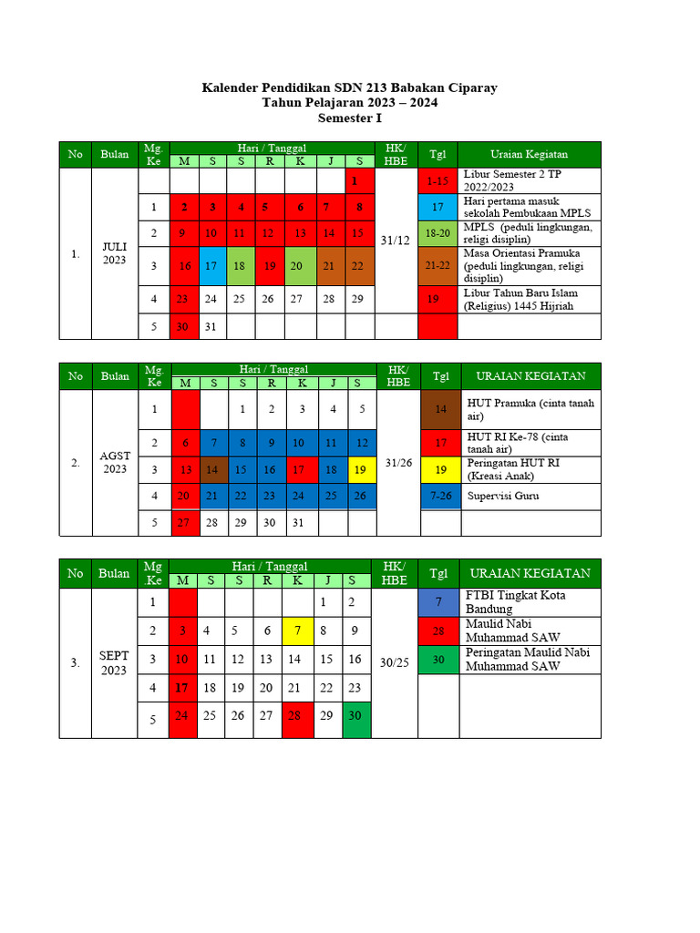 Kalender Pendidikan SDN 213 Babakan Ciparay SMT 1 | PDF
